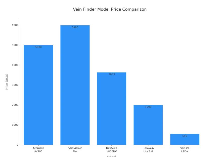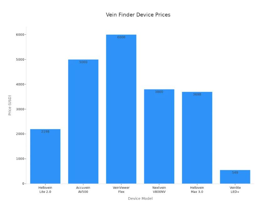 Vuoi confrontare i migliori dispositivi per la ricerca delle vene? Una tabella chiara ti aiuta a fare una scelta intelligente per la tua clinica o il tuo ospedale. Puoi consultare la tabella sottostante per vedere le principali caratteristiche, i prezzi e le tipologie di ciascun dispositivo. In questo modo, sarà facile individuare le differenze.