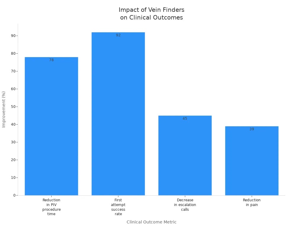 Si osserva inoltre che neonati e pazienti pediatrici beneficiano di punteggi di dolore più bassi e di minori complicanze, come infiltrazioni e flebiti. Il tempo medio di procedura scende da oltre sei minuti a poco più di tre minuti quando si utilizza un rilevatore di vene professionale. Questi miglioramenti evidenziano il valore dell'integrazione di questa tecnologia nella pratica quotidiana. Si fornisce un'assistenza migliore, si ottiene una maggiore accuratezza clinica e si garantisce un maggiore comfort del paziente in ogni procedura.