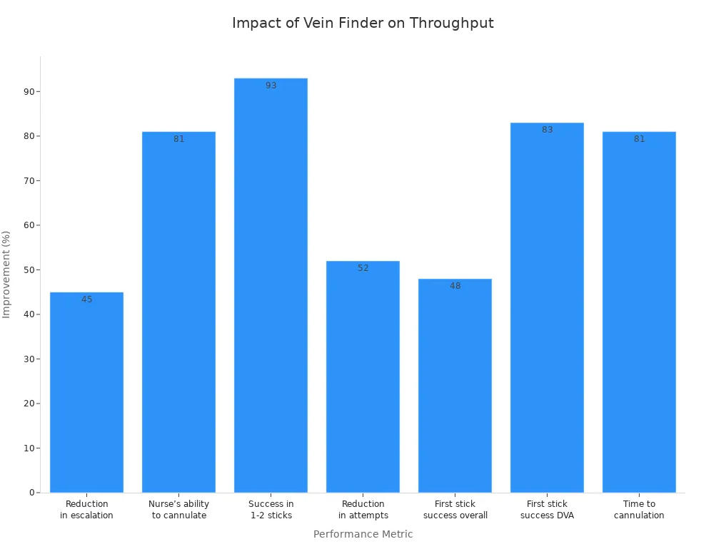Puoi vedere come un rilevatore di vene ospedaliere trasforma il tuo flusso di lavoro. Con un rilevatore di vene portatile per infermieri, localizzi rapidamente le vene, anche nei casi più complessi. Questa efficienza significa che puoi dedicare meno tempo alla ricerca e più tempo all'assistenza del paziente. Il miglior localizzatore di vene per infermieri ti aiuta a evitare ritardi e a far progredire il tuo team.